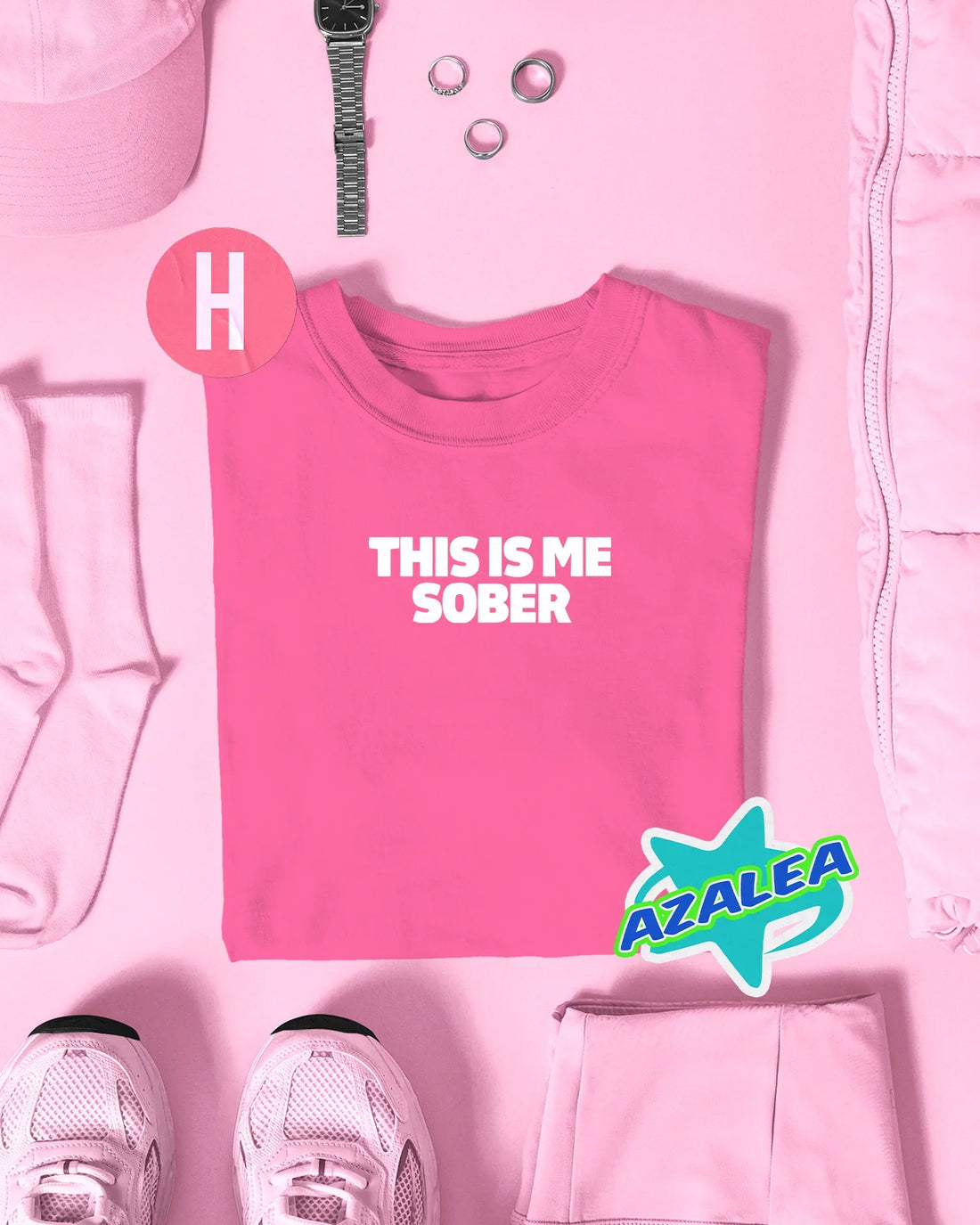 THIS IS ME SOBER slogan, white flock on pink - tee