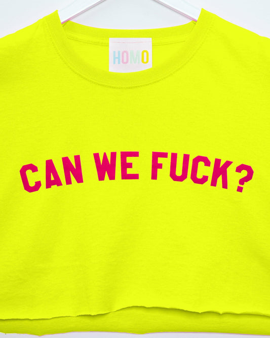 Fluorescent pink flock can we fu*k - Fluorescent yellow crop top