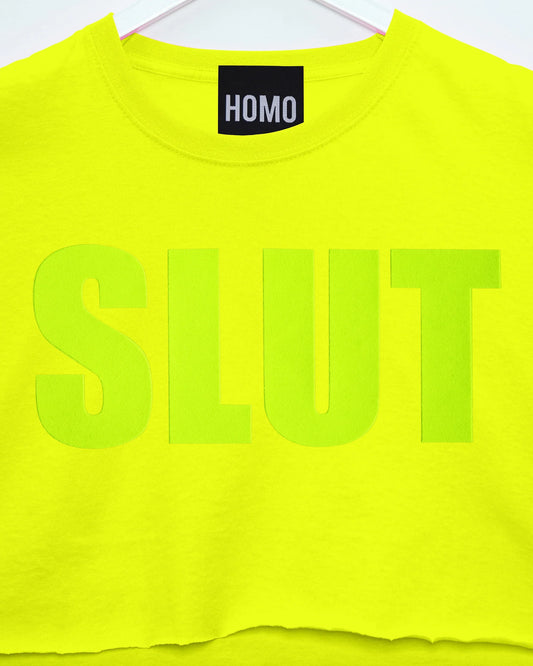 Fluorescent yellow S/UT on Fluorescent yellow - crop top