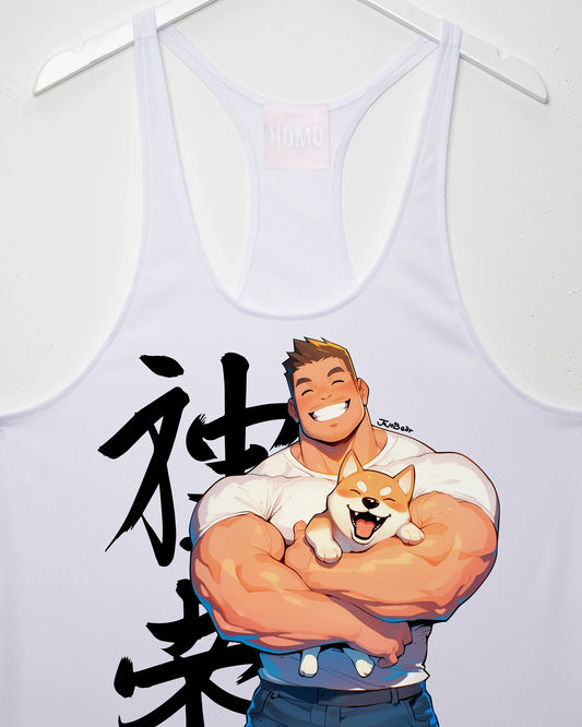 Jojo Bear: Hunky Hank with his Shiba Inu on white - tank top
