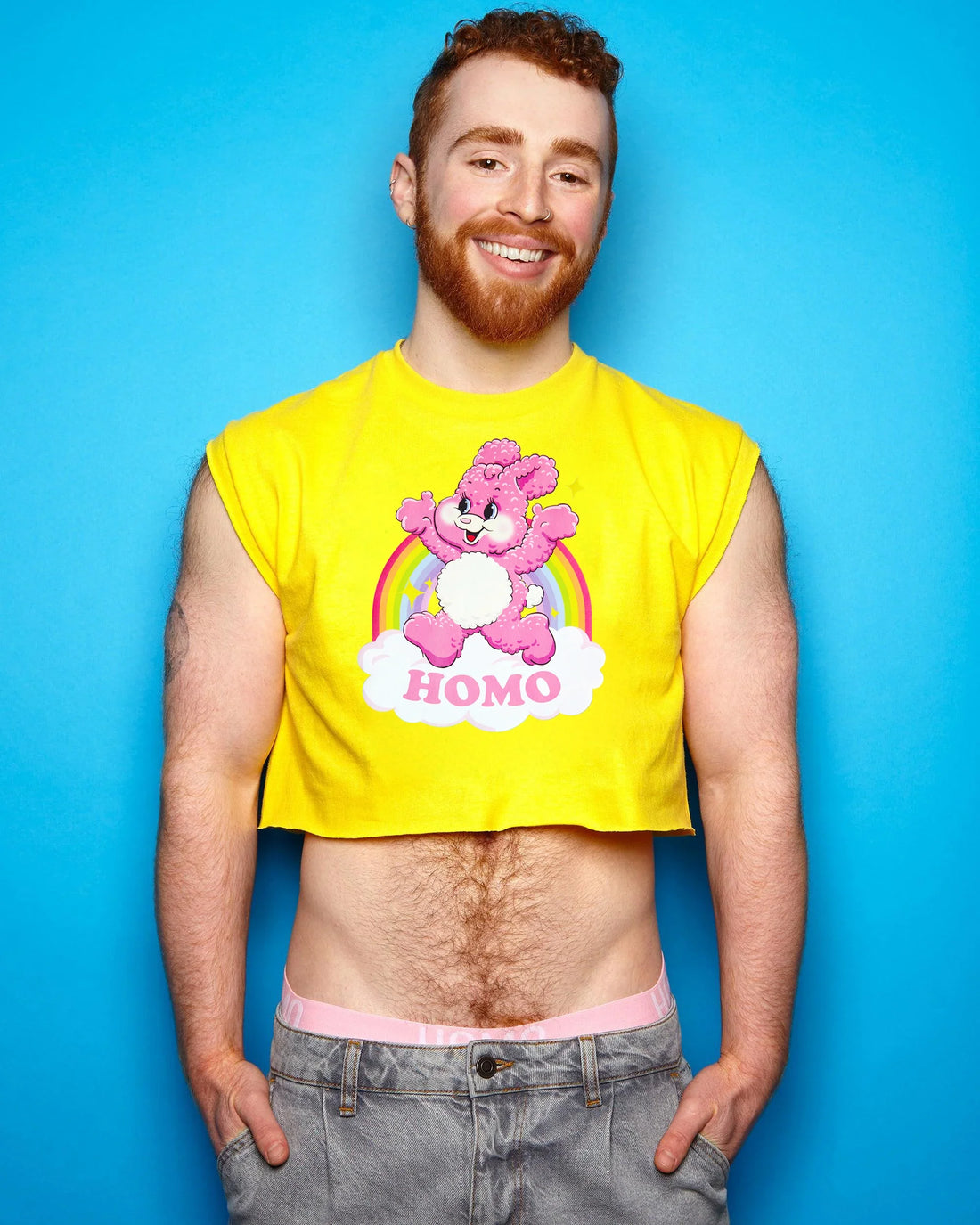 Cute HOMO bunny on yellow - Sleeveless crop-top
