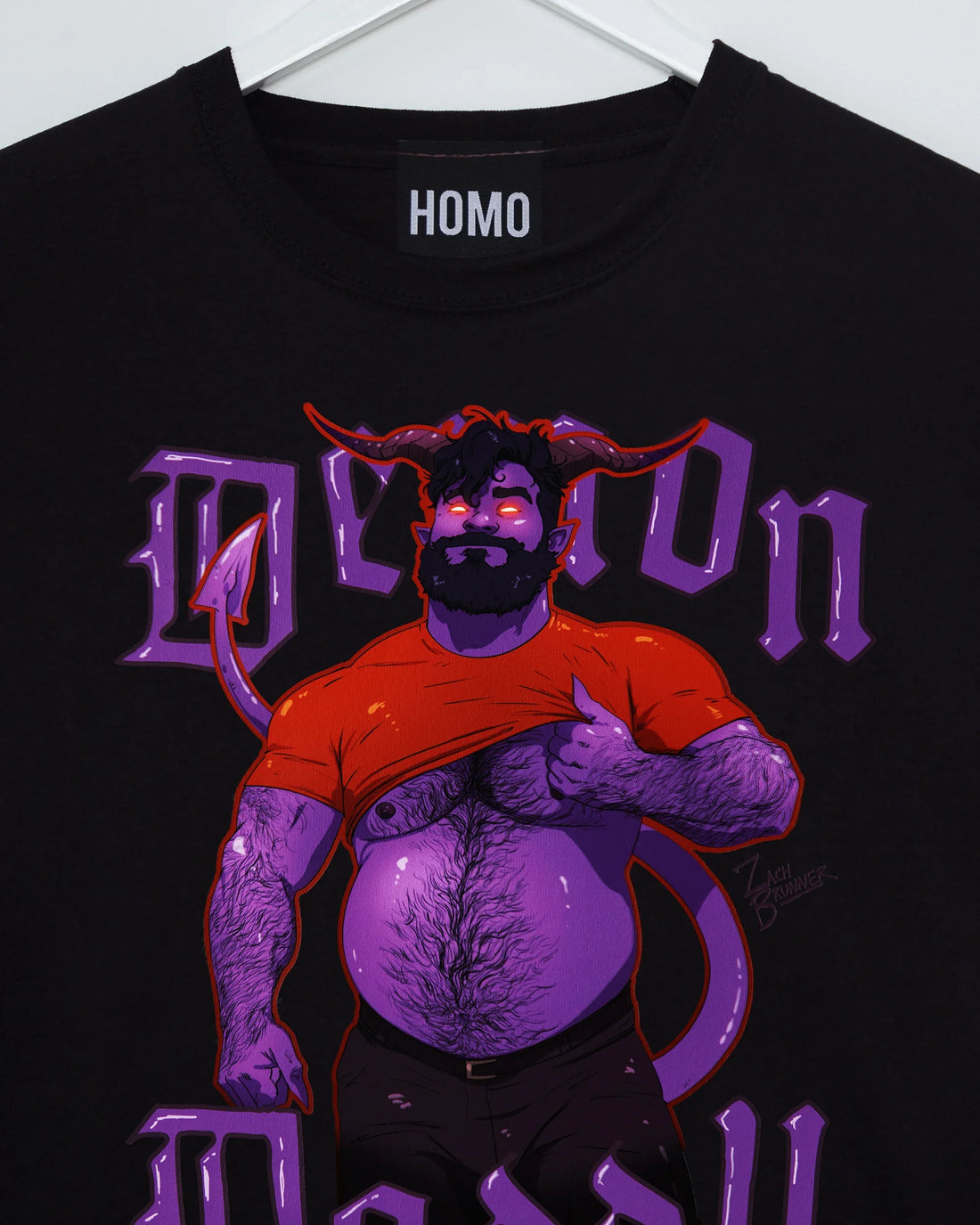 Demon daddy: chunky, hairy demon daddy on black - tshirt