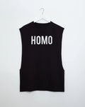 2XL - HOMO Logo, White on Black - Sideless