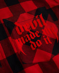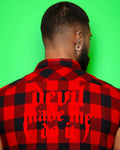 It's time to enter your demon era with this "Devil made me do it" sleeveless checked flannel shirt 👹 Perfect to show of them guns! Front and back print!!