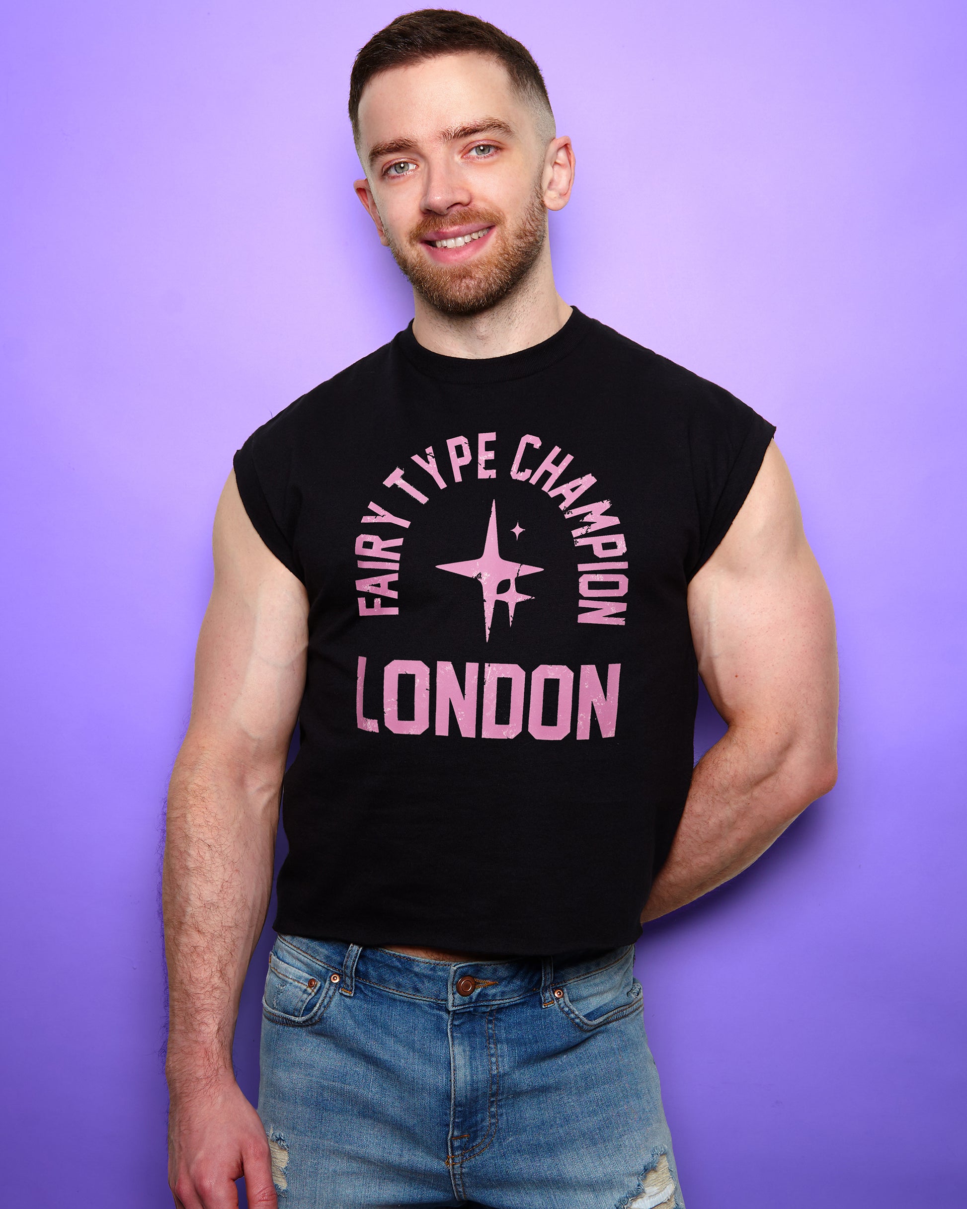 Fairy Champion (London) in pink, low cut cropped tee - black