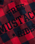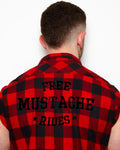 Free mustache rides, black flock on sleeveless checkered shirt