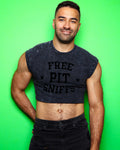 Free pit sniffs - black flock on black stone wash crop top