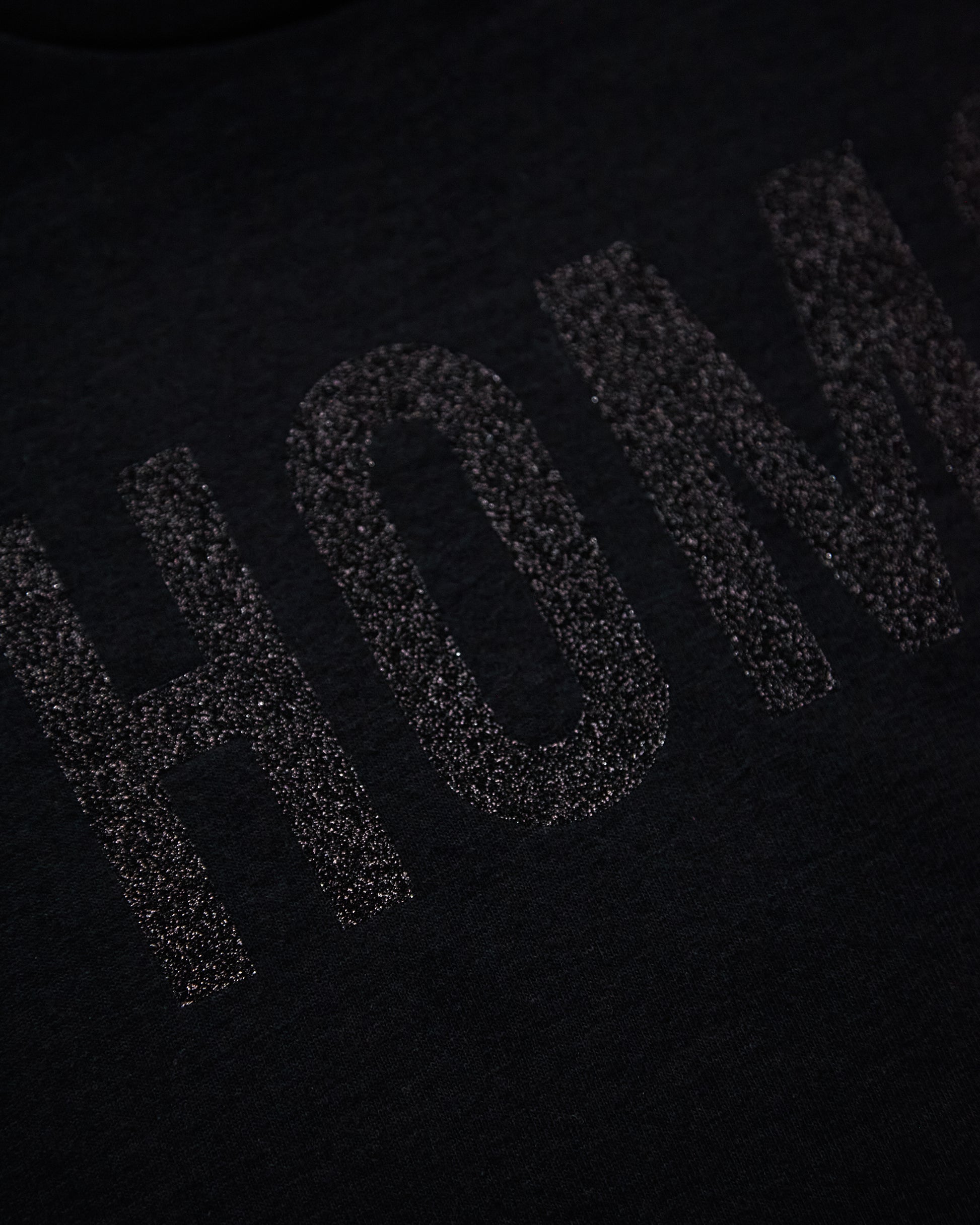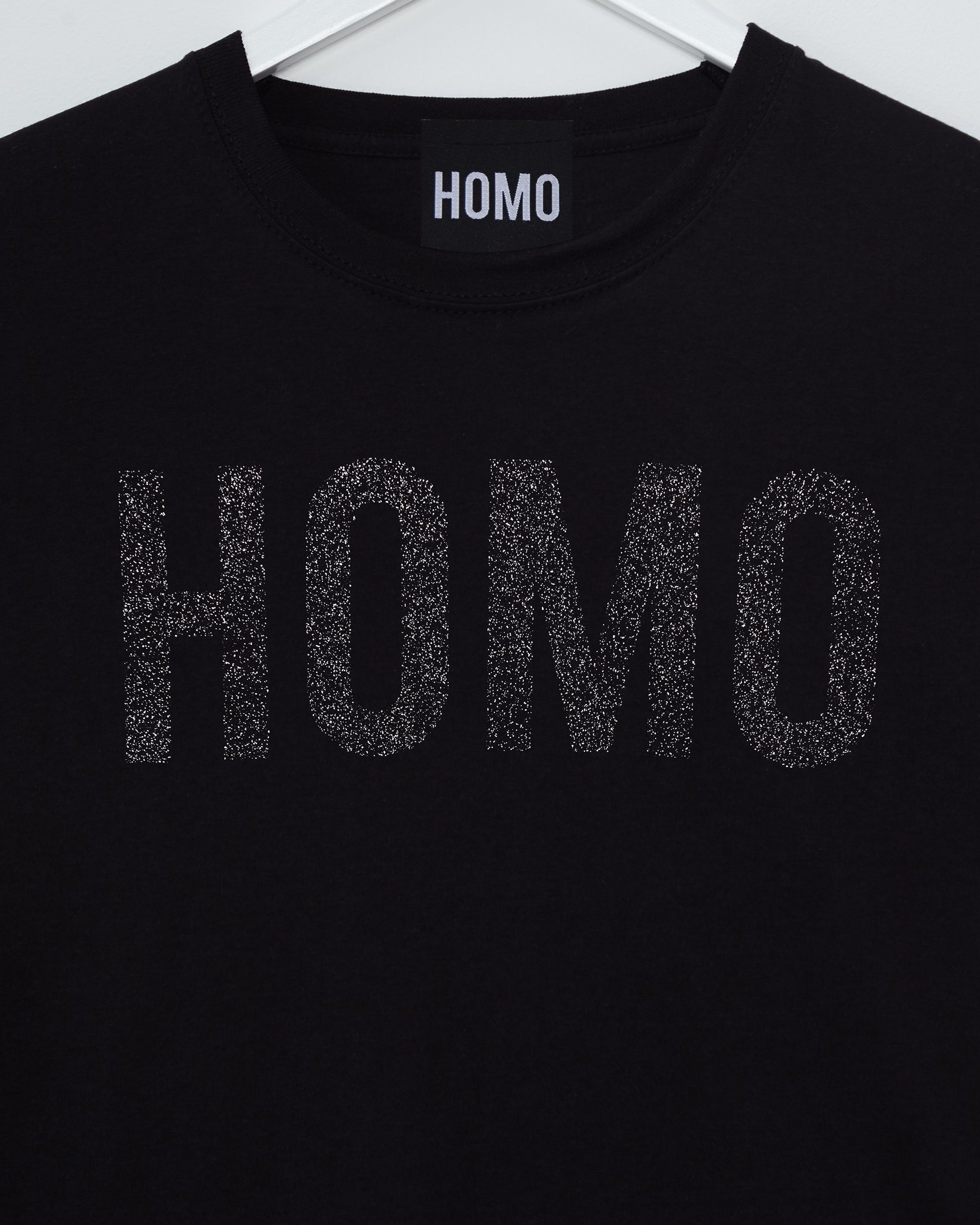 HOMO Logo, Black glitter print on black - low cut cropped tee