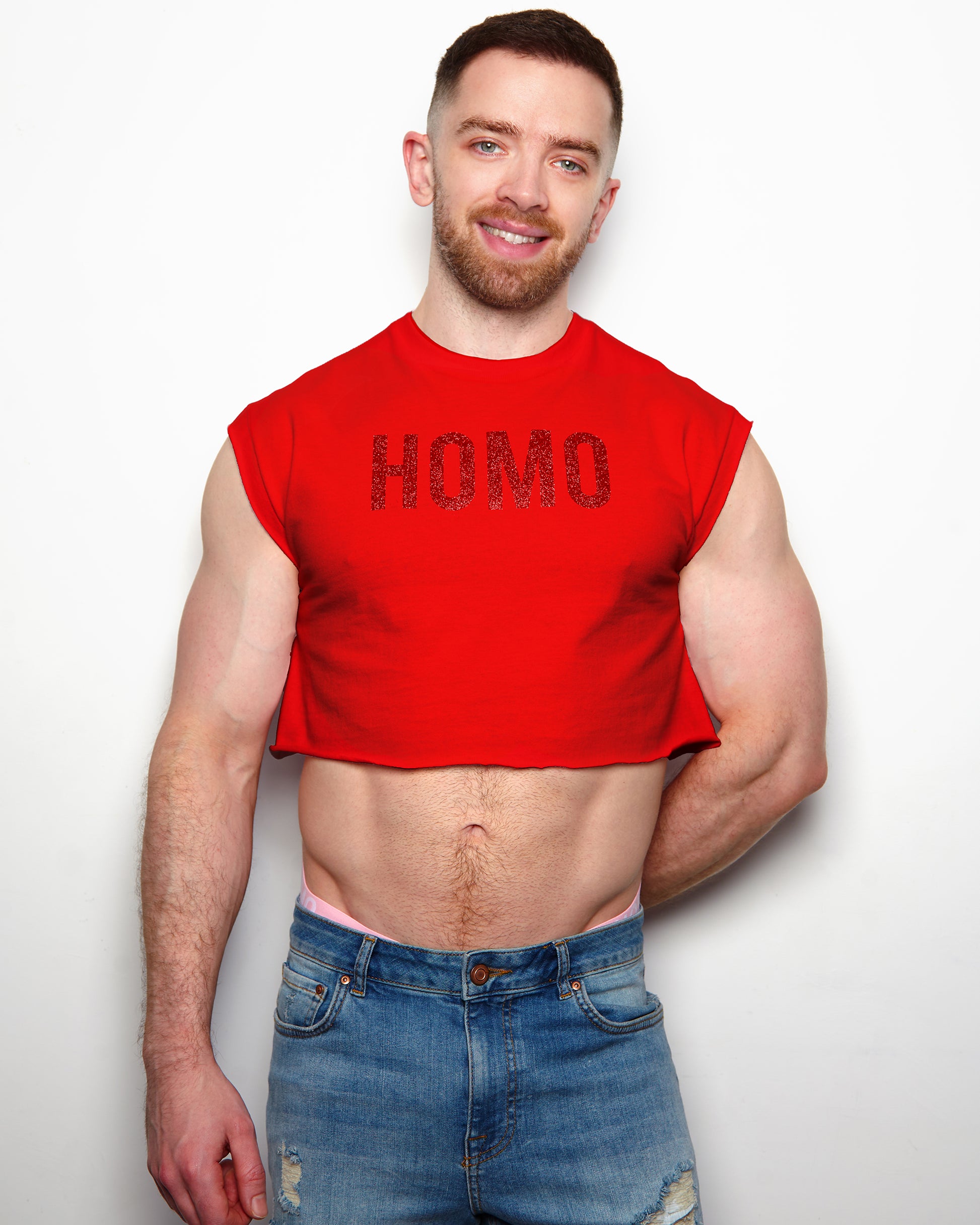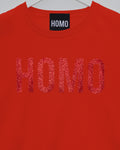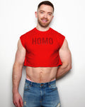 HOMO Logo, red glitter print on red - Sleeveless crop top