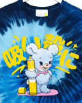 Nibble the sassy bear scribbles "into Butts" in Japanese on the tie-dye tshirt.