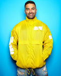 Light weight yellow jacket, perfect for rainy festivals and prides. Throw it in a backpack when your party and your ready for any weather fail and still look hot af while you do.