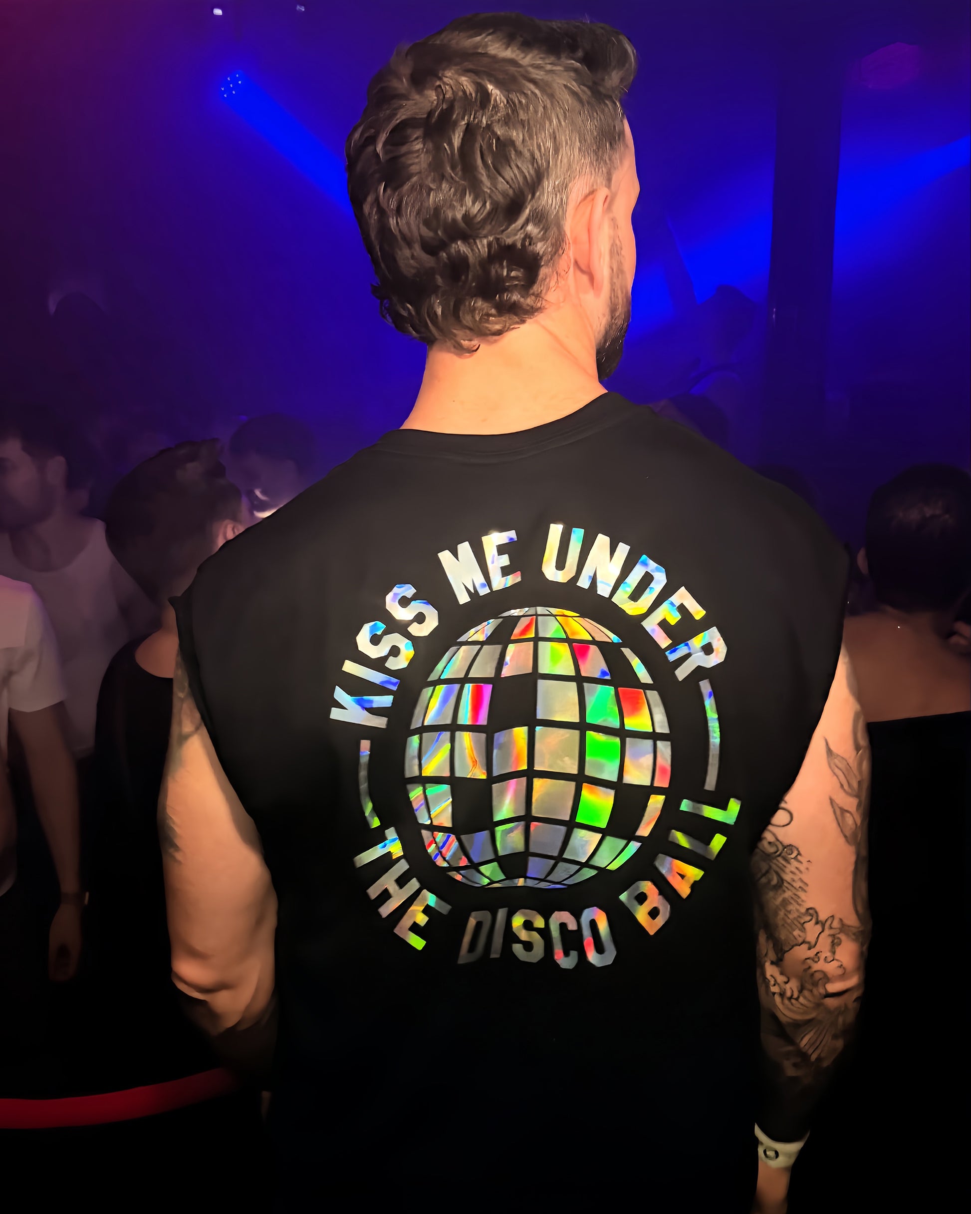 Kiss me under the disco ball, hologram - low cut cropped t-shirt