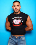 LARGE - Devilish, Free kisses on black. Distressed Sleeveless crop/tshirt crop
