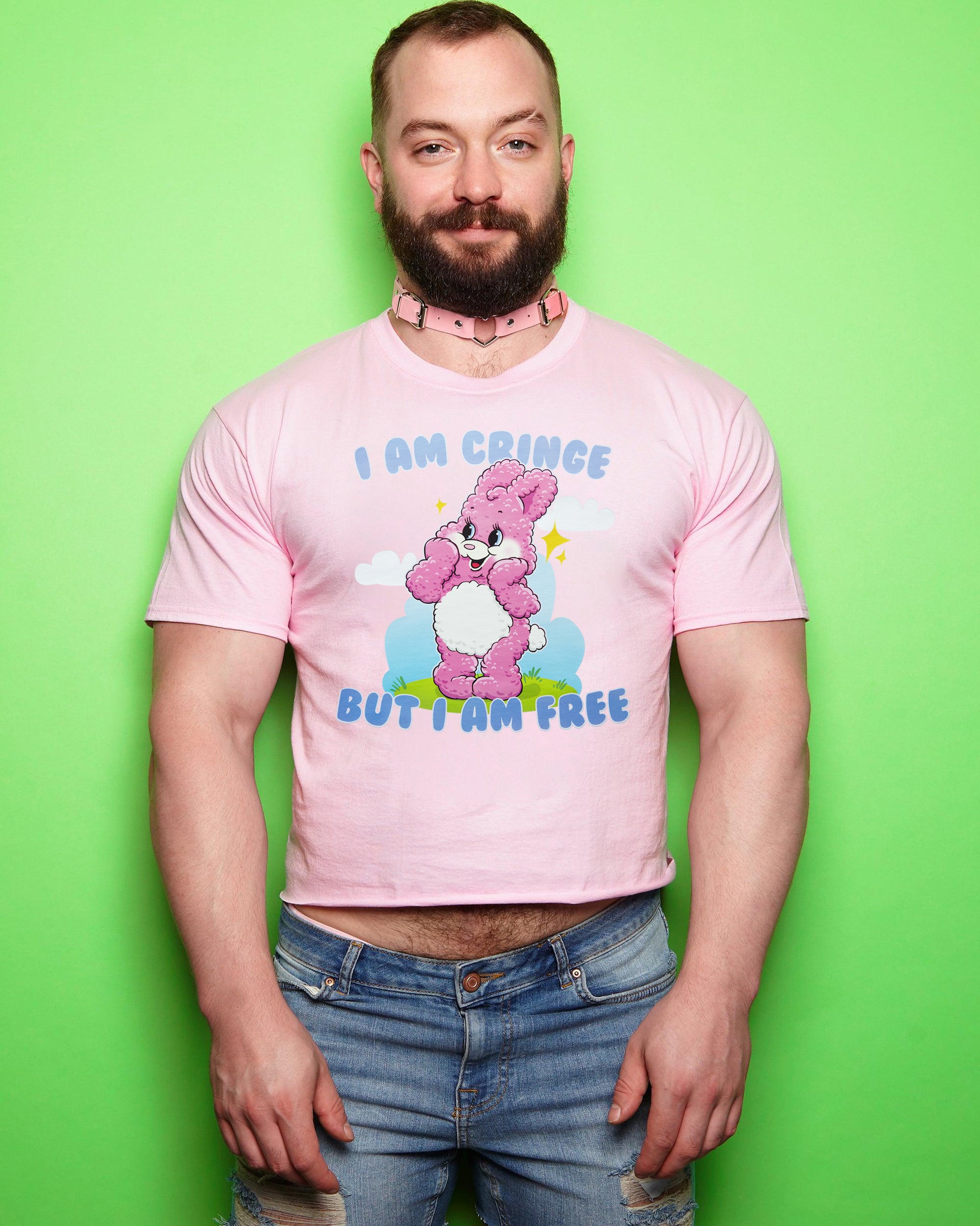 LARGE - I am cringe, but I am free - light pink tshirt crop /crop top