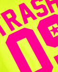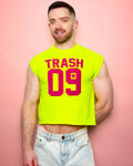 LARGE - Sports jersey TRASH 09 - fluorescent pink flock on fluorescent yellow sleeveless cropped tshirt