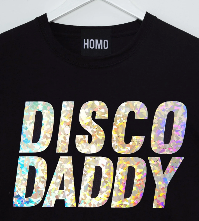 DISCO DADDY, sparkle on black - tee. - HOMOLONDON