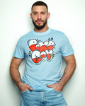 MEDIUM - Gaymer: Red and white slogan tshirt - acid wash blue