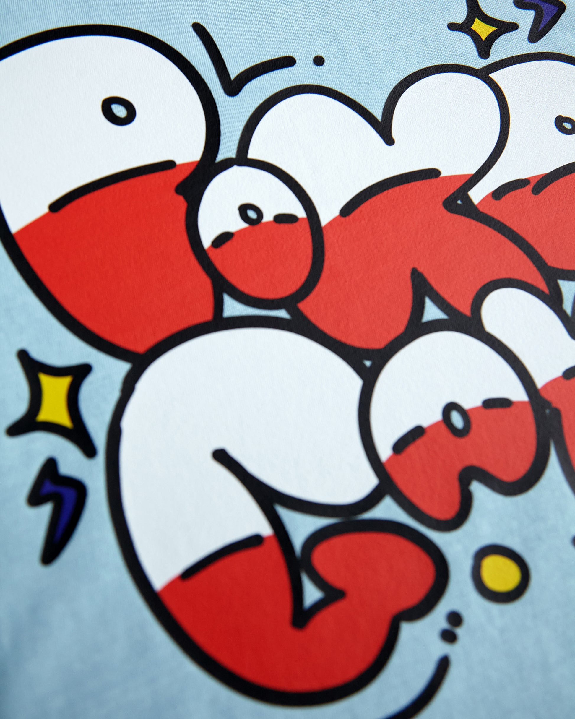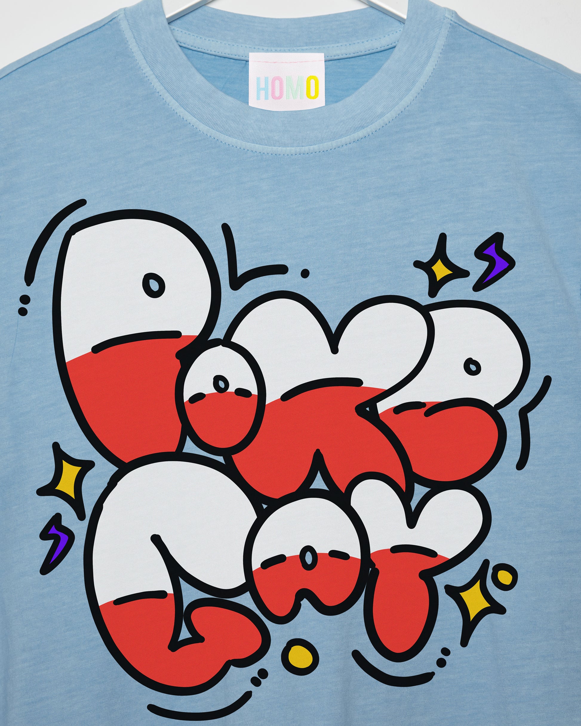 All HOMO artworks are hand printed, so artwork placements can vary from garment to garment. When washing HOMO we recommend a cold wash to preserve the colours as new.