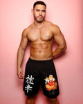 MEDIUM - Jojo Bear: Hunky Joseph with kitten buddy on black - basket ball shorts