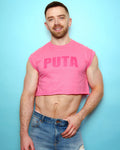 PUTA Logo, pink flock on pink - sleeveless crop top