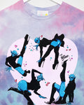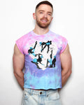 SMALL - Demon core: Voguing Vampires on pink tie-dye, low cut crop top