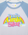 XL - Dad's little s/ut on raglan crop top - light blue/white