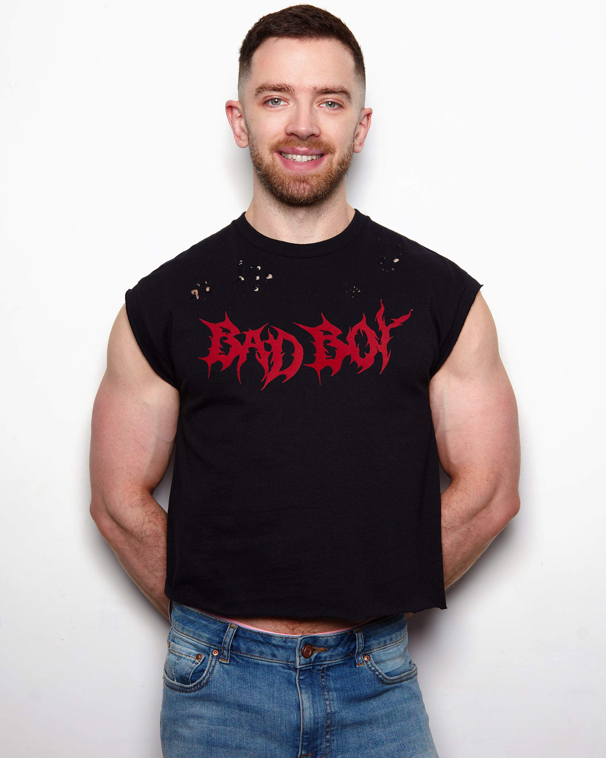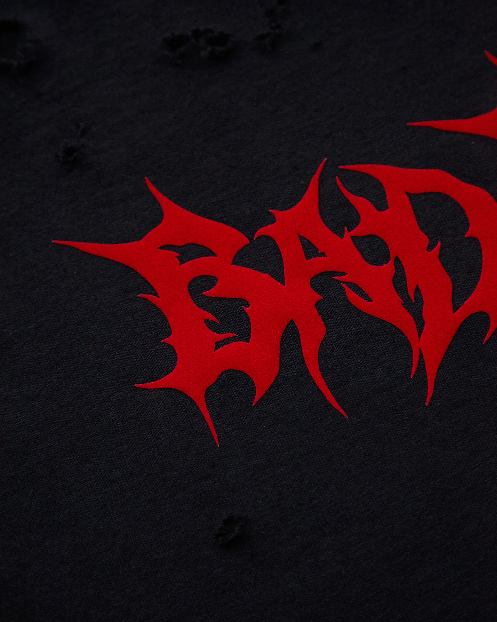 BAD BOY in flock distressed, low cut cropped tee - red/black