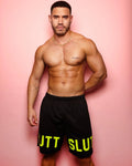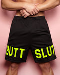 Fluorescent yellow Butt s/ut - black basketball shorts