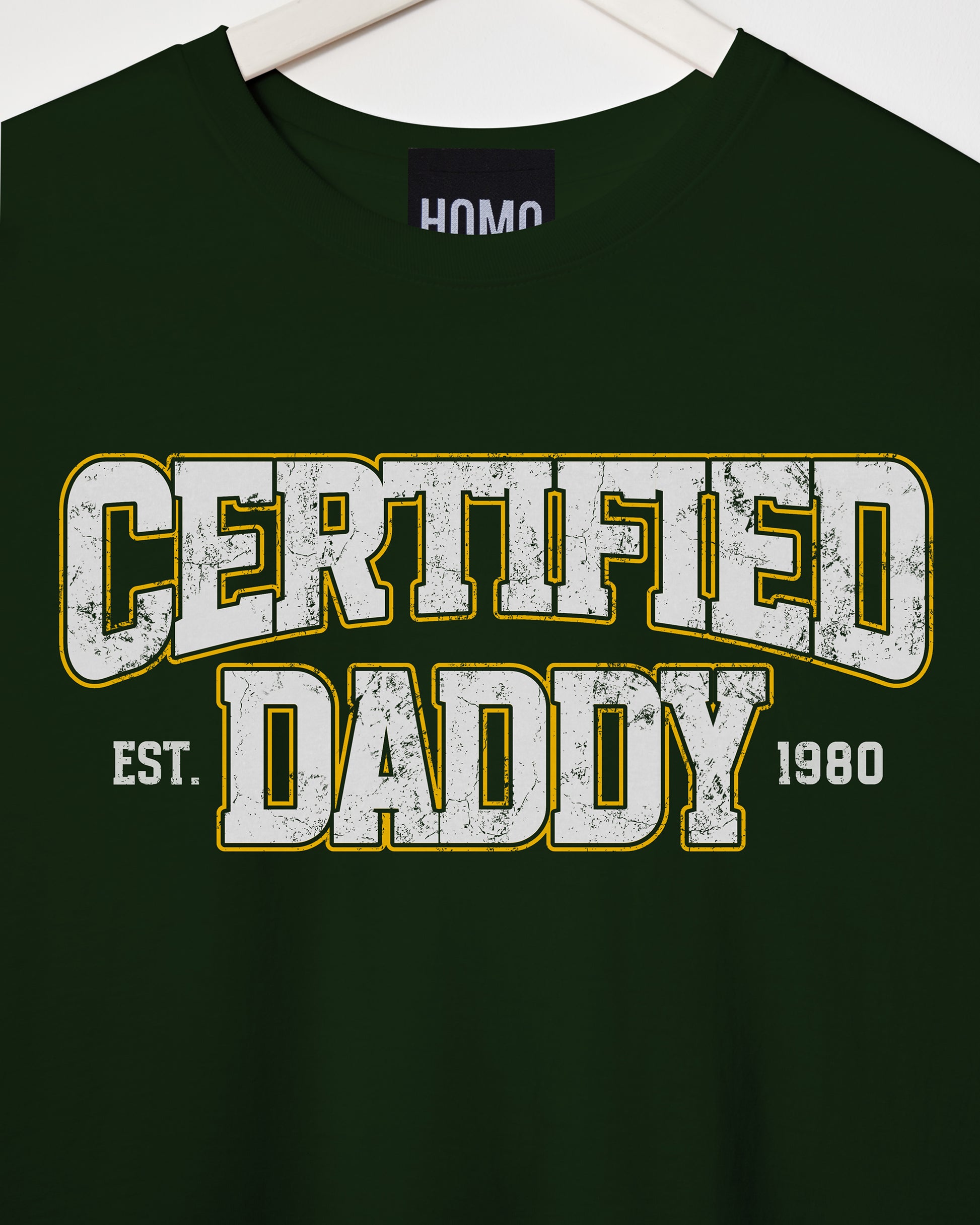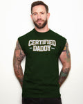Certified Daddy (College style) on green sleeveless t-shirt.