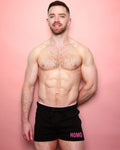 HOMO, Black on black with Pink flock logo - Retro shorts