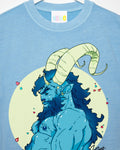 MEDIUM - Demon core: Abduxel the blue demon on blue acid wash - tshirt