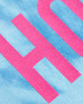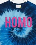 Pink flock HOMO on blue tie-dye - low cut crop top