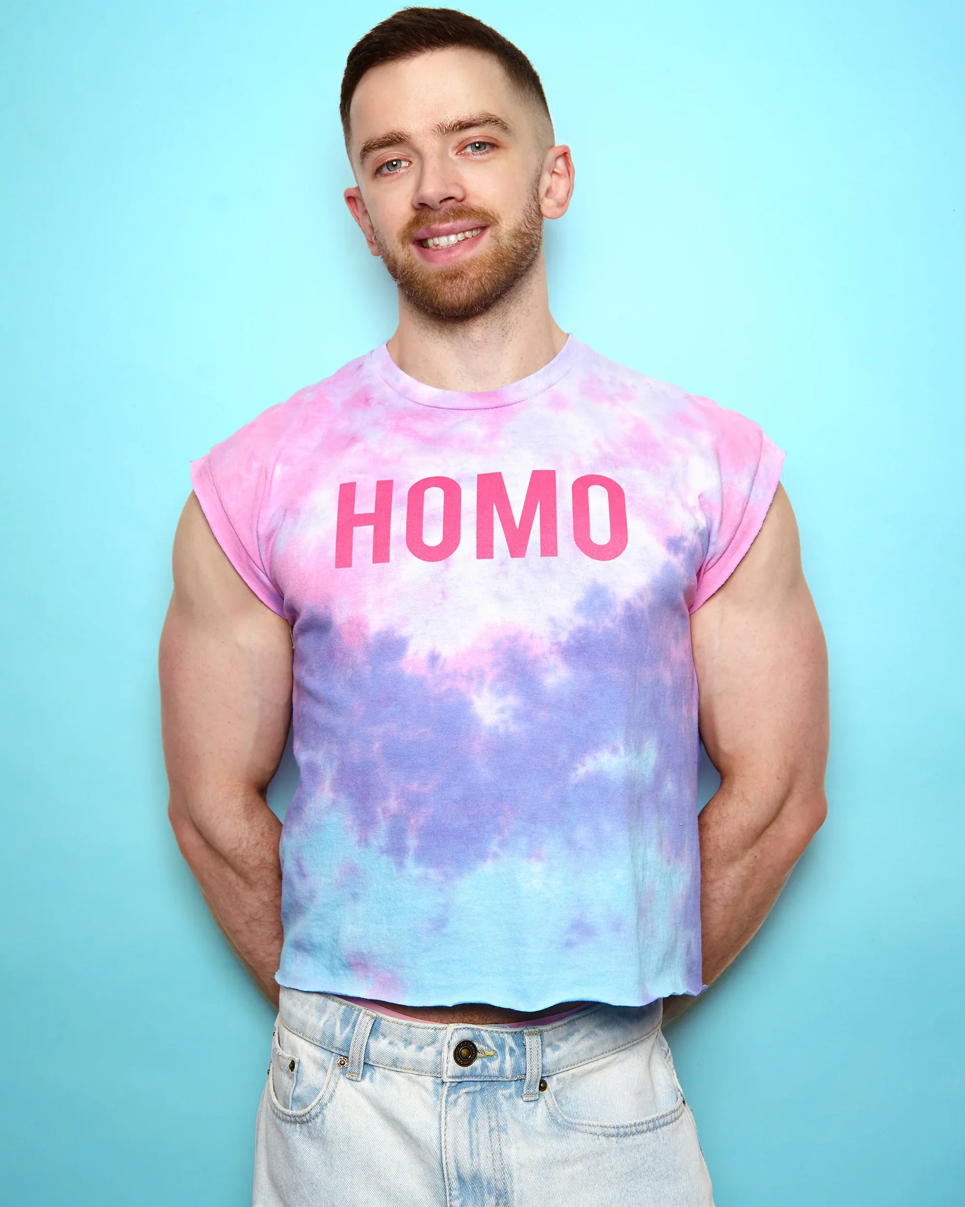 Pink flock HOMO on pink tie-dye - low cut crop top