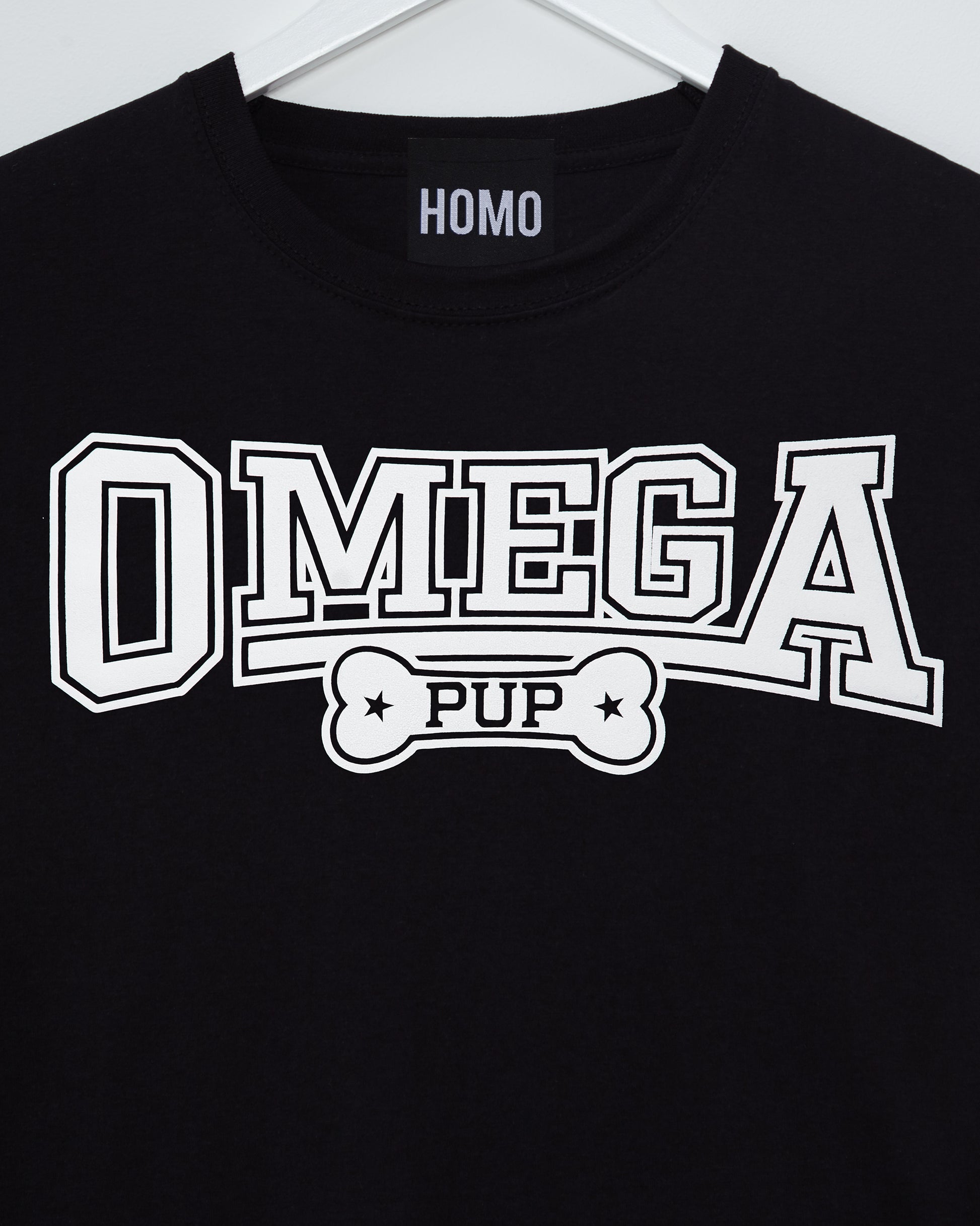 PUP Collection: OMEGA rubber print, t-shirt - white/black