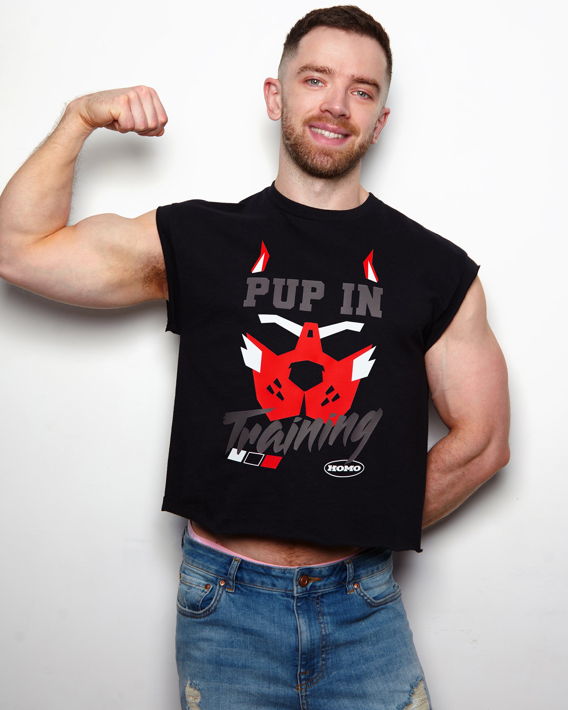 PUP Collection: Pup in training, low cut cropped tee - red/black