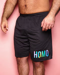 SMALL - HOMO hologram on black - basket ball shorts