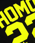 Sports jersey HOMO 22 - fluorescent yellow flock on black - Retro shorts