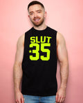 Sports jersey S/UT 35 - fluorescent yellow flock on black sleeveless tshirt